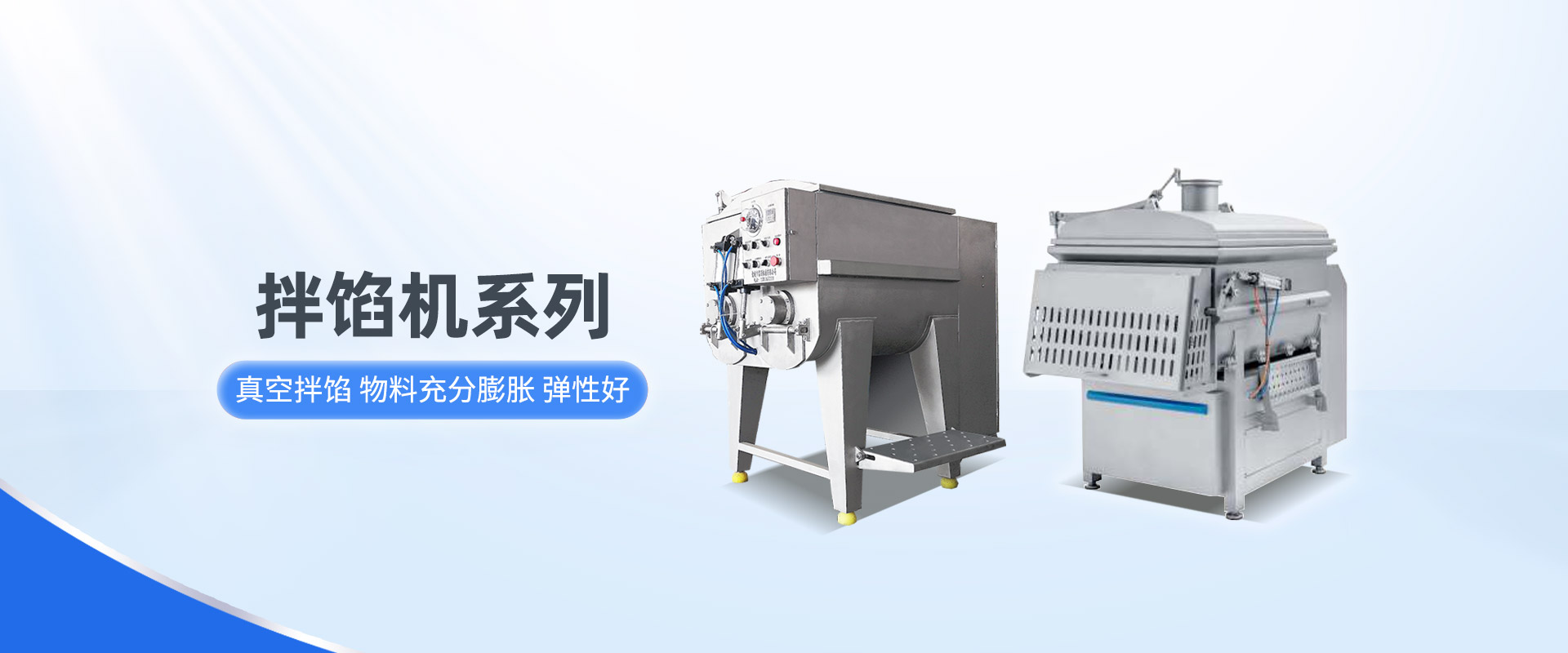 為各類肉制品提供不同的處理方式,包含的設備有絞肉機,真空滾揉機,拌餡機,鹽水注射機,灌腸扎線機,凍盤破碎機等多種系列產品。